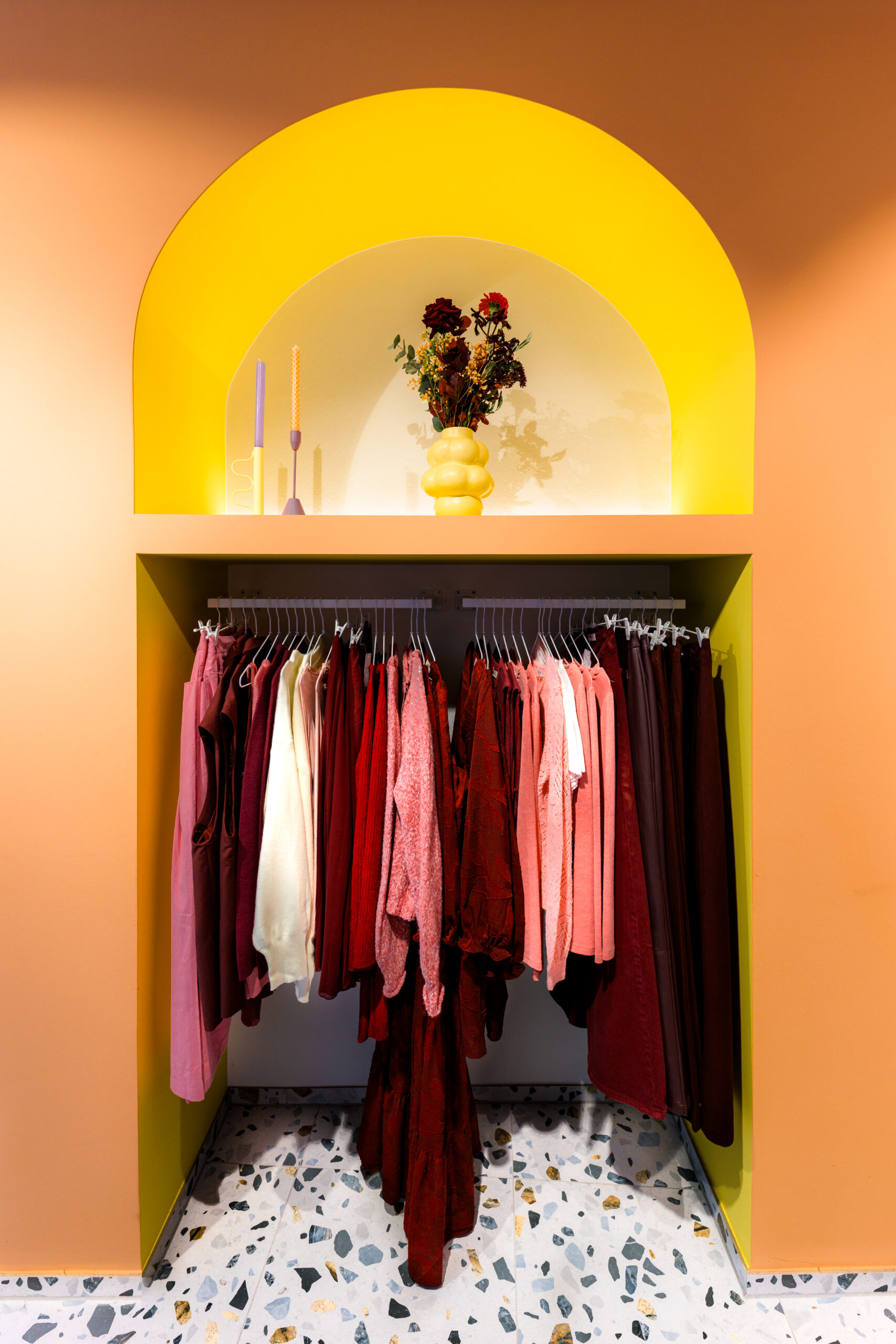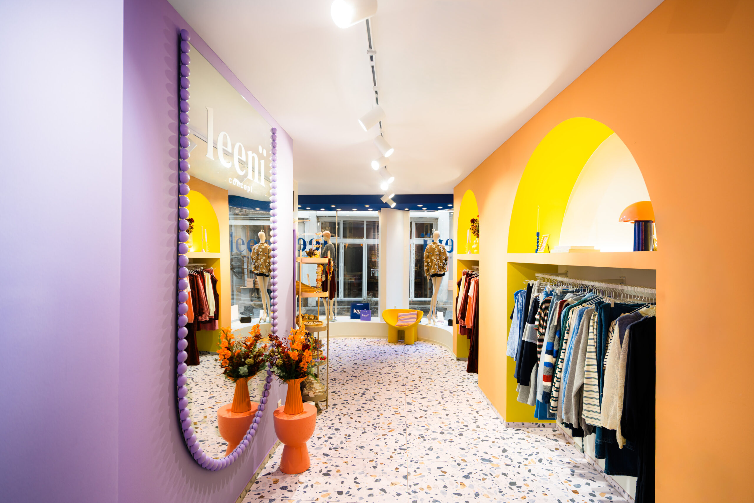 Die Farbwelt wird zum verbindenden Element zwischen Raum, Marke und Mensch und spiegelt die Identität der Marke Leenï wider: modern, feminin und lebhaft. Die bewusst gesetzten Farbakzente sorgen für Wiedererkennbarkeit und die Produkte treten klar hervor und entfalten ihre Wirkung in einem Umfeld, das gleichzeitig Wertigkeit und Leichtigkeit vermittelt. So entsteht ein Raum, der visuell ansprechend als auch emotional einladend ist.